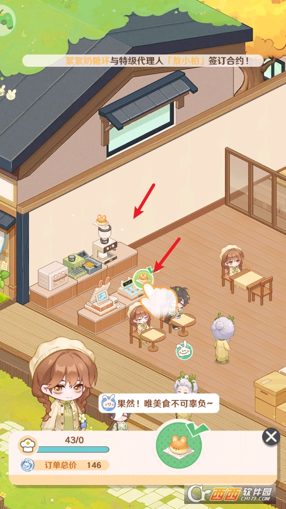 2、随后我们选择对应的设施进行制作,制作好之后点击客人即可送餐。