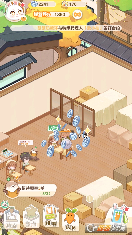 3. 特色店员招募养成,技能搭配提升经营效率。兔灵、远古猫族等多种可爱的店员各具特色技能,有的擅长加快出餐速度,有的能提升顾客满意度,还有的可以增加菜品收益。根据店铺经营需求合理搭配店员阵容,进行等级提升和技能培养,让经营过程更加轻松高效。