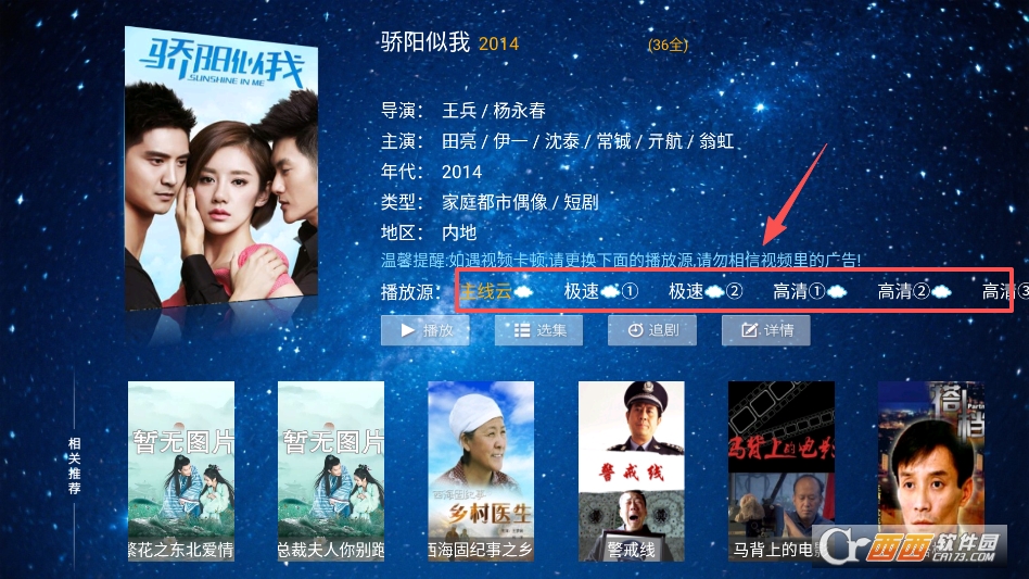 如果资源播放卡顿,可以在资源详情页点击播放源列表中的源进行切换