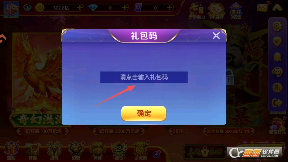 点击游戏主界面右上角按钮呼出菜单再点击礼包码按钮