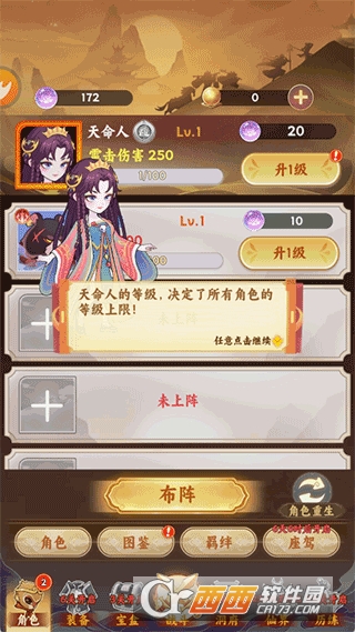 1、进入踢爆那西游游戏角色界面中选定角色进行布阵