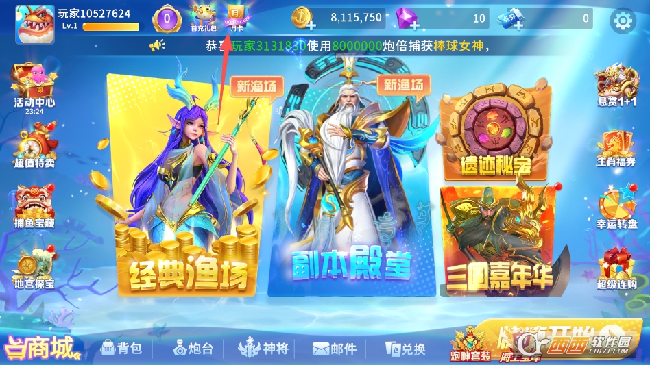 这款游戏中如果想要享受自动开炮特权,需要在主界面点击上方月卡按钮
