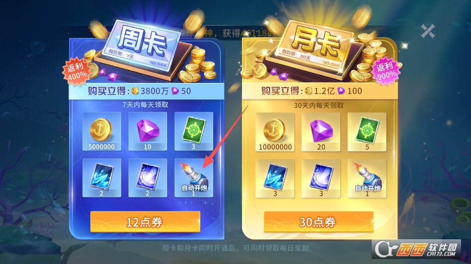 购买月卡之后才能解锁自动开炮特权哦