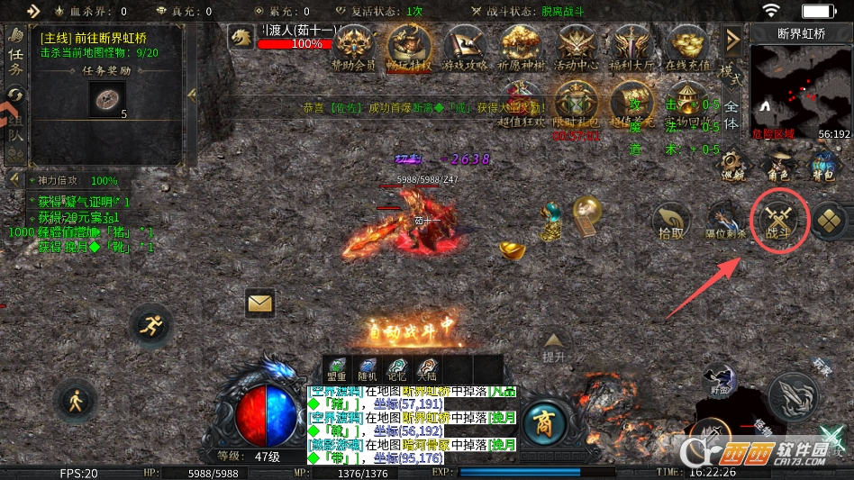 这个时候点击游戏画面右侧战斗图标,即可重新开启自动挂机状态哦
