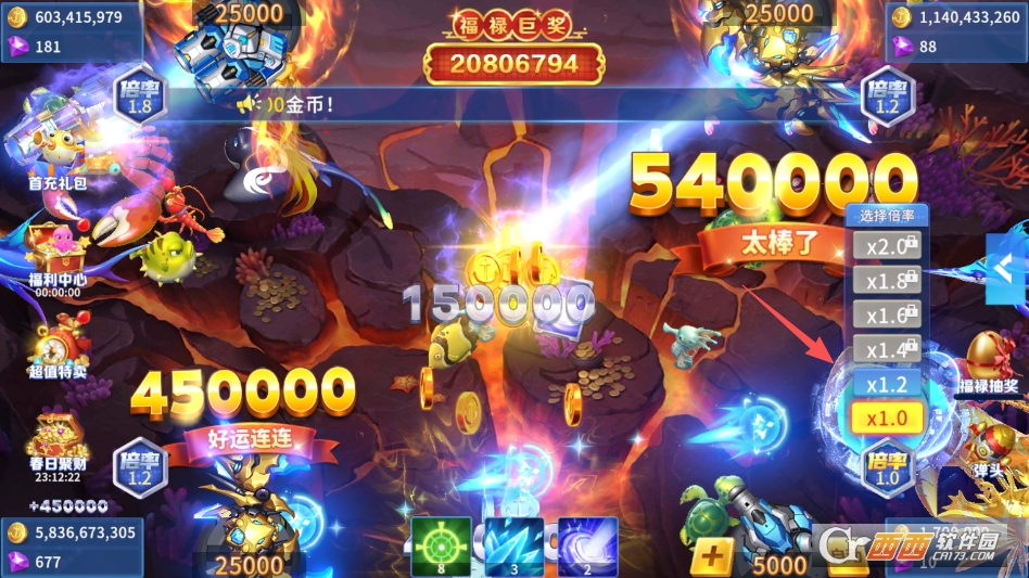 找到你自己的炮台位置,可以看到炮台附近有一个倍率按钮
