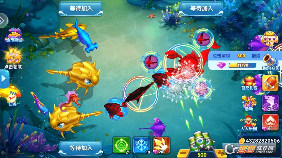 全新捕鱼模式涵盖深海夺宝、BOSS围剿、动态鱼阵等多元玩法,每款模式都有专属规则与奖励机制。不同于普通捕鱼的固定场景,这里的鱼群会组成特色阵型移动,BOSS还会释放专属技能,搭配千倍炮台与全屏技能,捕获瞬间的光影特效炫酷夺目,满屏金币与红包提示交织,视觉与快感双重拉满。