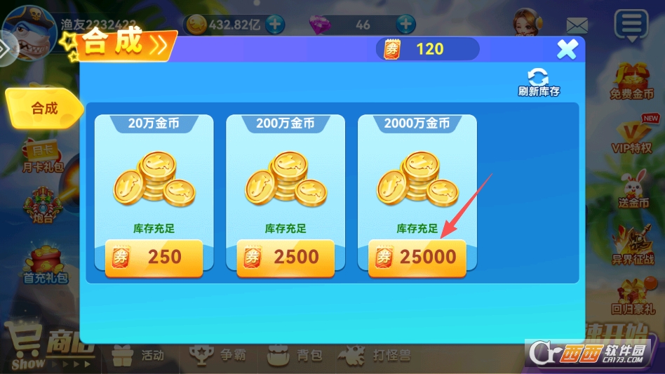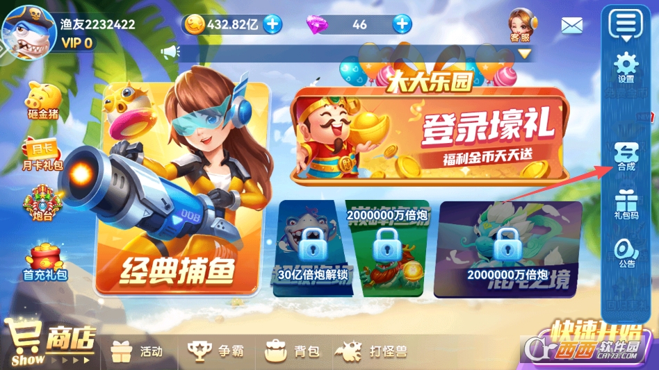 2. 装备升级体系完善,战力提升看得见。炮台可通过金币与材料逐步升级,解锁千倍甚至万倍火力,搭配强化、觉醒功能,大幅提升捕获效率与伤害加成。高级装备不仅战力强劲,还能解锁专属炫酷特效,捕获高级鱼种更轻松。