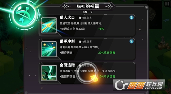 2、完成符文激活后,系统将进入祝福选择界面。你可以从多个猎神祝福中挑选一个,赋予角色独特的增益效果,大幅提升战斗能力!