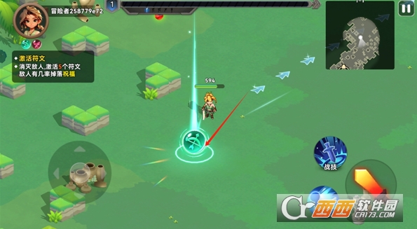 1、在战斗中击杀小怪后,会掉落符文能量,靠近拾取那个发光的小珠子,即可激活符文效果,获得额外能力加成。