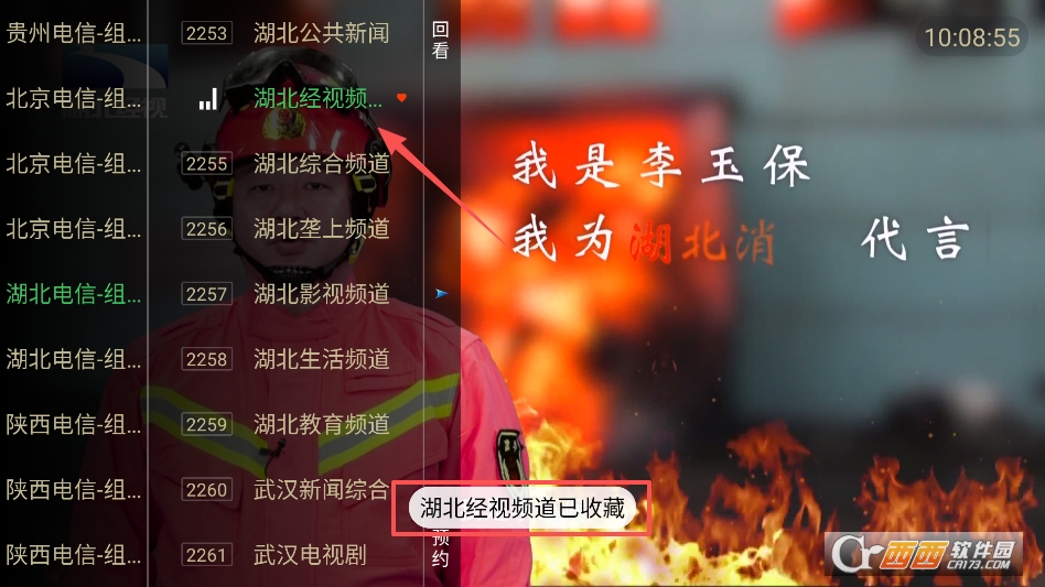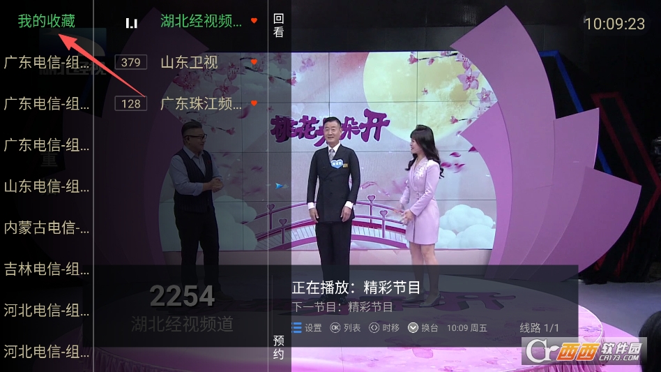 呼出频道列表后找到喜欢的频道并长按进行收藏