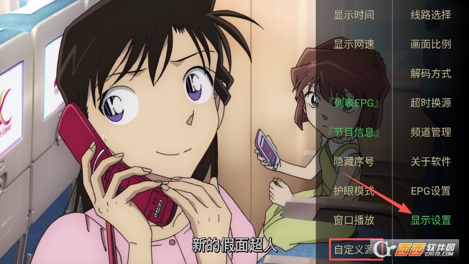 呼出设置菜单,找到显示设置中的自定义源选项