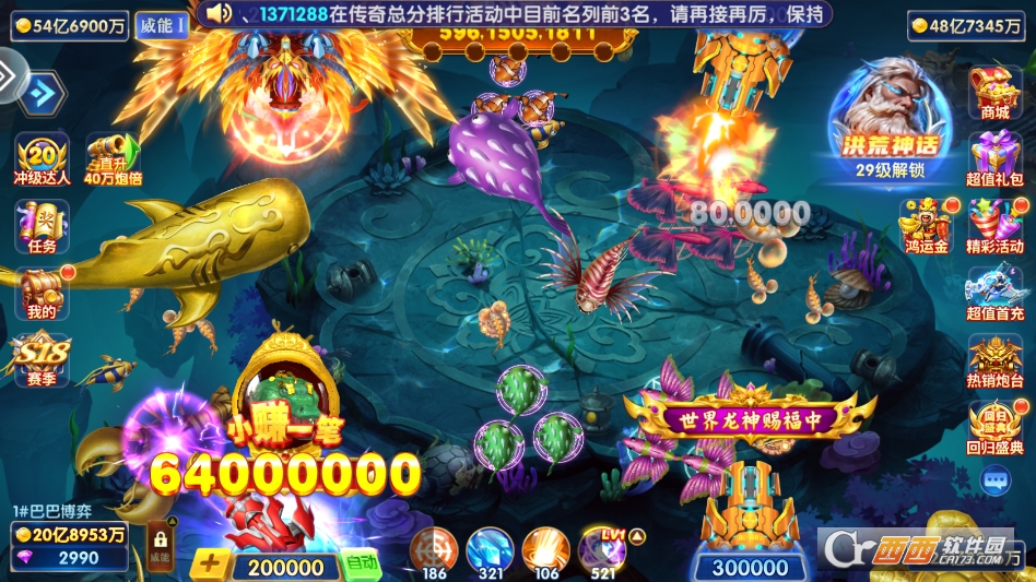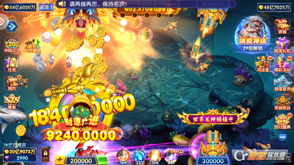4. 主题活动模式,不定期上线八仙赐福、海域寻宝等特色活动。参与活动完成指定任务,即可领取限定奖励,金币雨、高爆道具拿到手软,活动玩法与核心捕鱼深度结合,既保留经典乐趣,又增添全新游玩动力。