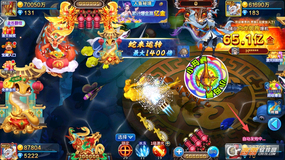 1. 经典自由模式,无时间限制与准入门槛,玩家可自由选择渔场与炮台倍率,随意捕捉各类鱼群积累金币。适合新手熟悉操作、掌握鱼类习性,也适合休闲玩家佛系摸鱼,自动开炮功能可解放双手,轻松完成每日任务,积累基础资源。