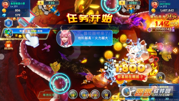 2. 深海冒险捕鱼玩法,探索斑斓多彩的海底场景,应对多变鱼潮阵型和特殊鱼种,挑战镇关海王等强力BOSS。每个海底场景都有专属鱼种和隐藏福利,BOSS掉落稀有道具和高阶炮台碎片,通关可解锁更高级别的渔场和玩法权限。