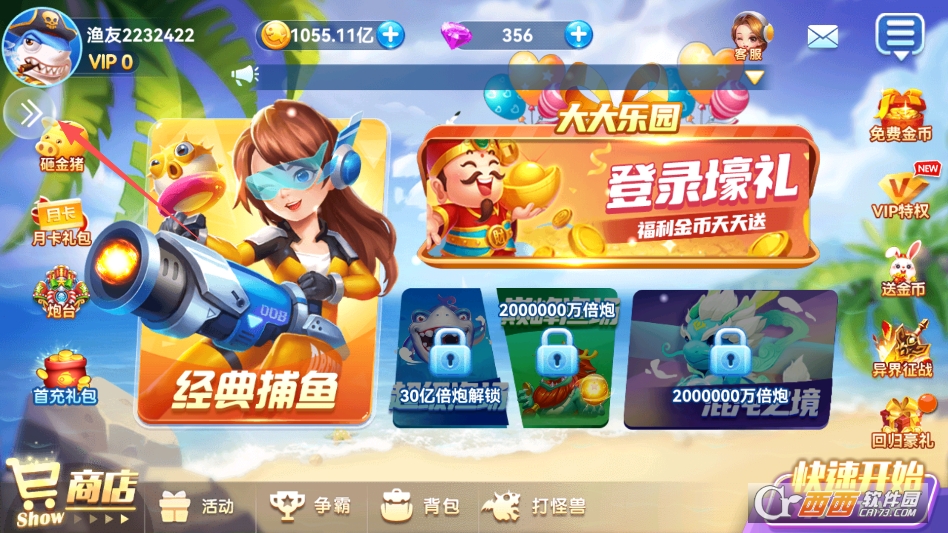 4. 特色赛事模式,每周开启捕鱼精灵、激战海皇BOSS、VIP猎妖三大赛事,参与可赢取高额金币与实物奖品。部分高阶赛事需达到指定等级解锁,全服玩家共同挑战BOSS,按伤害占比排名发放奖励,高阶竞技场还能获得稀有炮台碎片。