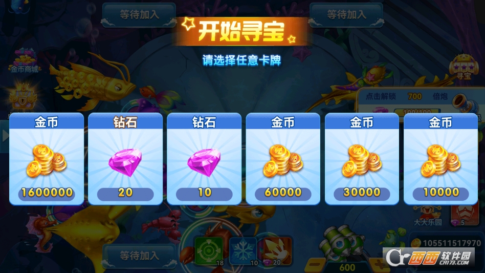 2. 组队寻宝模式,点击主界面组队寻宝入口即可进入,支持创建房间或加入他人房间,创建房间需消耗房卡,可自定义房间BOSS最大倍数。邀请好友组队开局,每场游戏有时间限制,玩家协作捕获鱼群可获得额外收益,互动乐趣远超单机模式。
