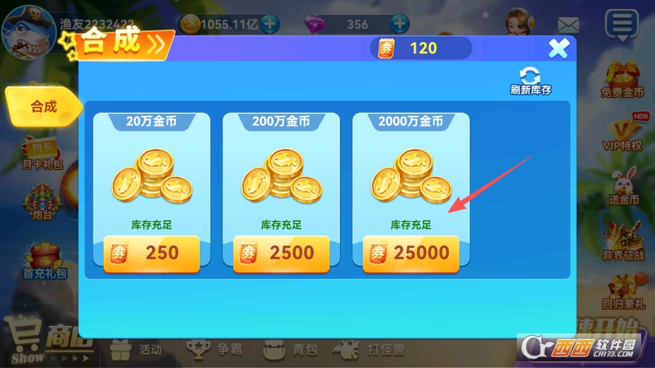 大家在打鱼的时候获得的奖券,点击主界面右上角按钮,呼出菜单选择合成