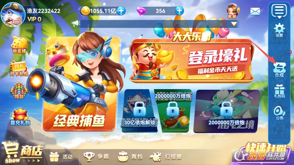 每日必做任务与福利领取,签到、完成3个日常小任务可获得道具包与金币,整点参与红包雨活动能额外积累资源。零氪玩家不要浪费钻石买道具,优先升级炮台;小资玩家可购买贵族月卡,每日领取大量道具与金币,破产时还能快速回血。