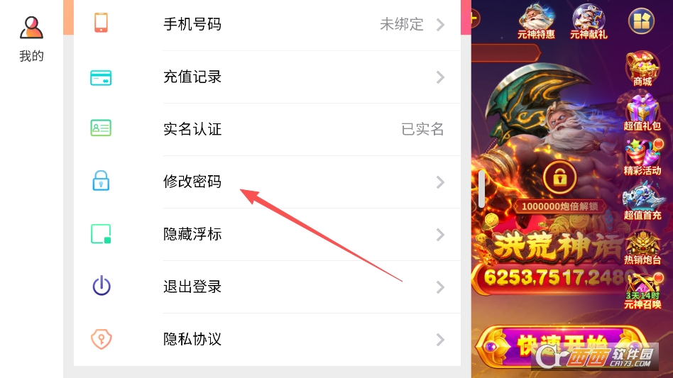 打开菜单后点击修改密码选项即可