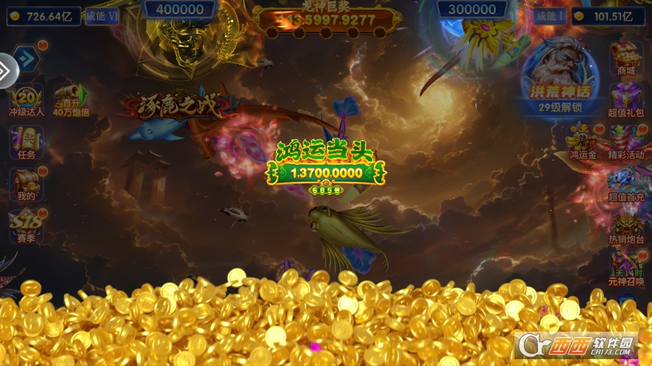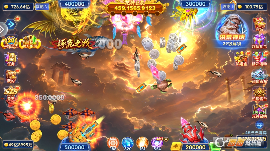游戏里打造了九大特色捕鱼场:从适合新手玩的龟相迎宾场,到高分挑战的龙王降世场、超级至尊场,每个渔场都有专属的鱼类、BOSS和玩法机制。龟相迎宾场有成长任务帮助新手进阶,龙王降世场可以孵龙蛋、抢龙珠来触发高额爆金,超级至尊场则有超高倍率的巨鲲BOSS等你来秒杀,越高级的渔场爆率和收益就越高。