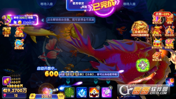 1,进入游戏后点击屏幕就能开炮捕鱼