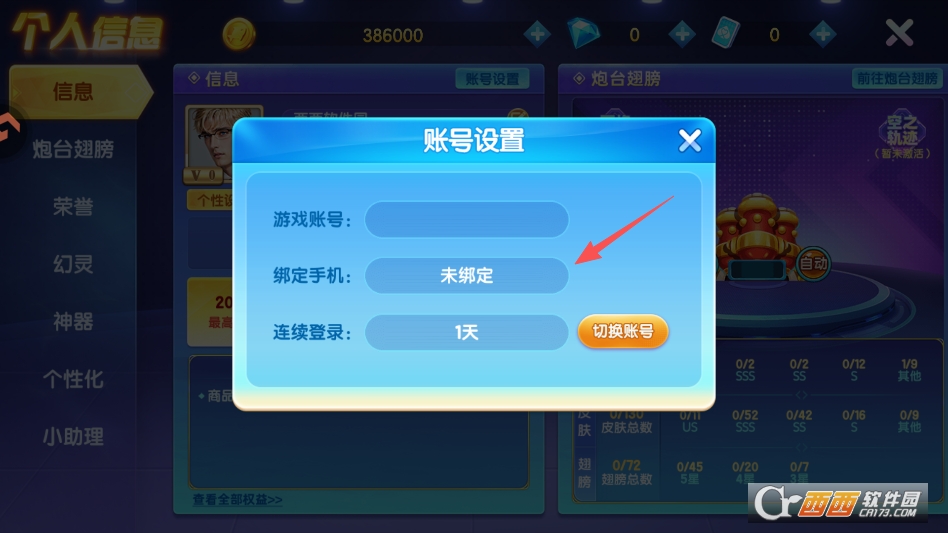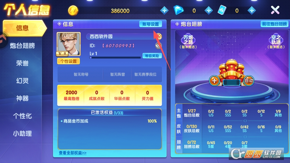 进入游戏点击左上角头像来到个人中心,然后打开账号设置版块