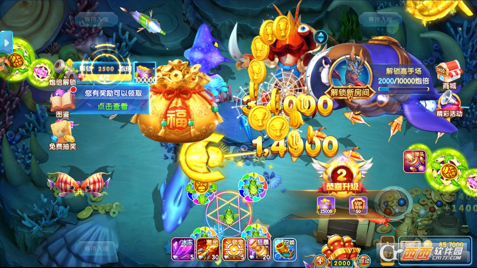 1. 积分兑换系统贴心实用,捕鱼赚来的金币不浪费,可直接升级装备、购买道具,不用充值也能不断提升捕鱼效率和战斗力,新手也能快速解锁高阶玩法,不用为资源短缺发愁。