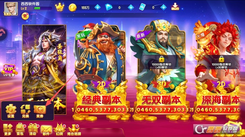 我们点击游戏主界面左下角的更多按钮,找到兑奖选项