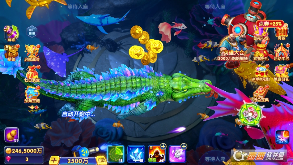 浩游捕鱼炸翻天春节福利版78.18G0人在玩浩游捕鱼炸翻天春节福利版专为捕鱼游戏爱好者打造,采用全新的3D画面引擎制作,唯美精致的海底世界搭配华丽的全屏爆金特效,为玩家们带来身临其境的沉浸式捕鱼体