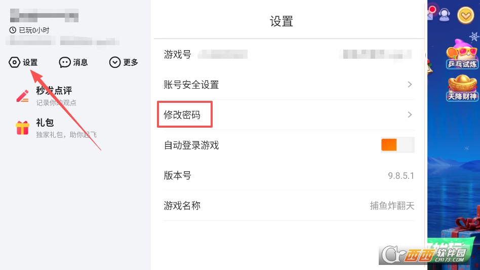打开菜单,点击设置按钮,然后找到修改密码选项即可