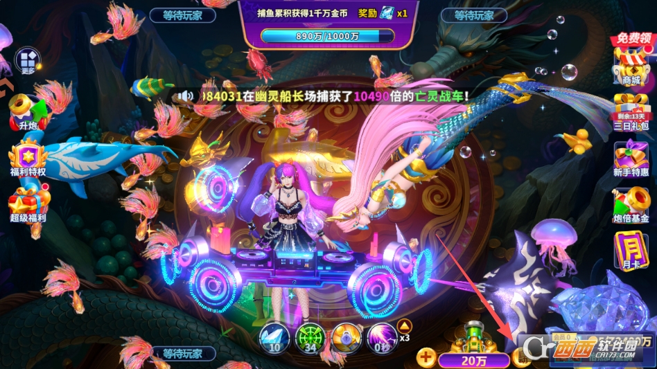 3. 千炮房、万炮房玩法,这两个场次主打高倍率爆金,千炮房倍率起步就是千倍,万炮房直接拉满万倍,火力超强,捕获高分鱼和BOSS的概率大幅提升。进入这两个场次无需额外付费,只要金币充足就能进入,爆金几率超高,轻松实现满屏爆金、快速赚金币。