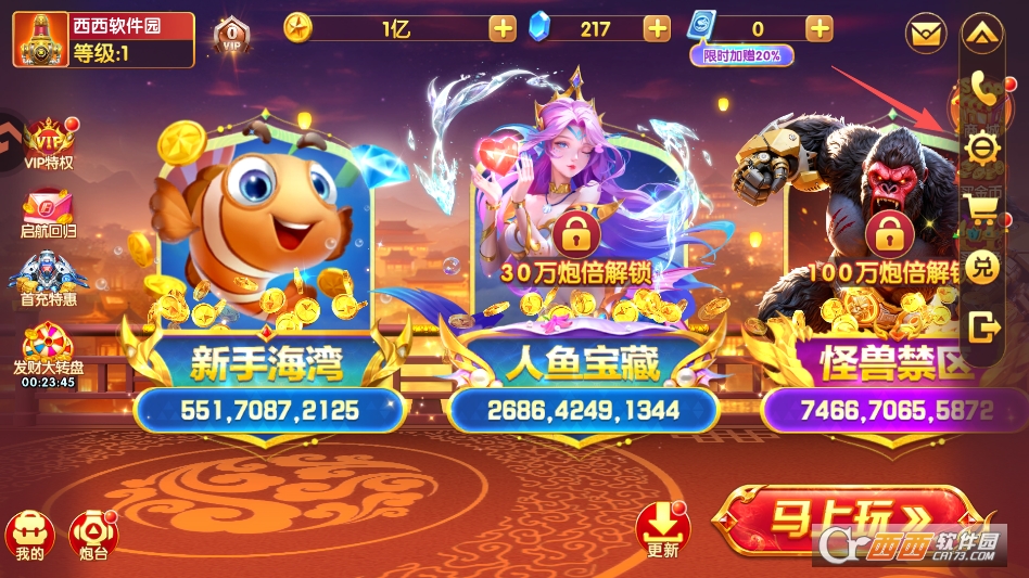 浩游捕鱼炸翻天春节福利版78.18G0人在玩浩游捕鱼炸翻天春节福利版专为捕鱼游戏爱好者打造,采用全新的3D画面引擎制作,唯美精致的海底世界搭配华丽的全屏爆金特效,为玩家们带来身临其境的沉浸式捕鱼体