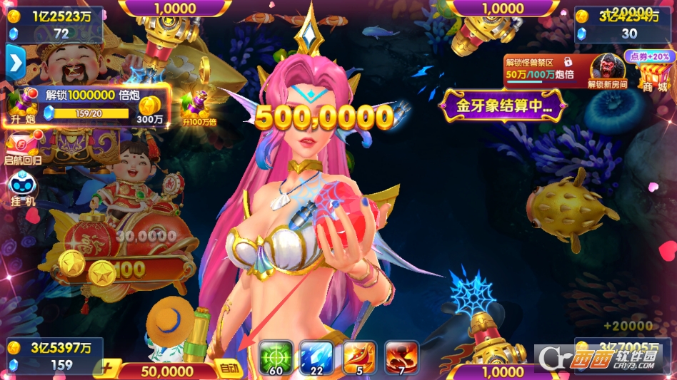 捕鱼大世界千倍版1G0人在玩捕鱼大世界可交易版是一款超高人气的休闲捕鱼手游,最大的特色就是支持游戏内道具、金币自由交易,打破传统捕鱼手游资源无法流通的局限,让玩家捕鱼赚资源的同时