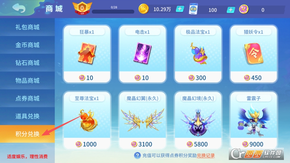 在商城中可以在积分兑换版块中使用积分来兑换奖励