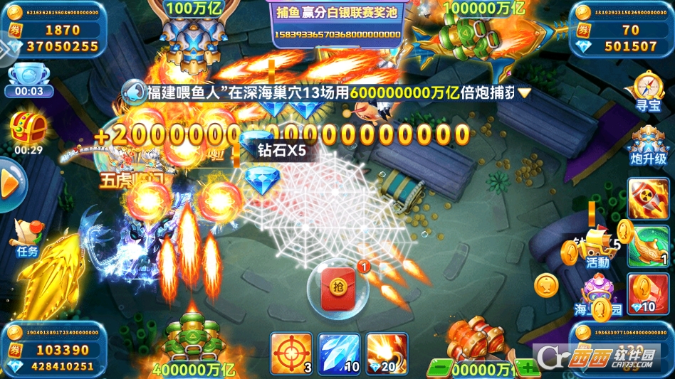 2. 捕鱼时尽量瞄准鱼群密集的地方开炮,尤其是小鱼群聚集的区域,一发炮弹就能捕获多条小鱼,既能快速积累金币,还能提高红包掉落的概率,比单独瞄准一条鱼更划算,效率也更高。