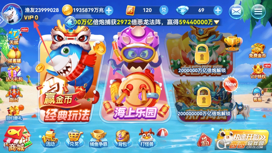疯狂捕鱼送vip版135M0人在玩疯狂捕鱼送vip版是一款福利拉满的休闲街机捕鱼手游,最大的亮点就是上线就送VIP,不用氪金、不用做复杂任务,登录就能直接解锁VIP特权,享受专属福利和加成,让玩
