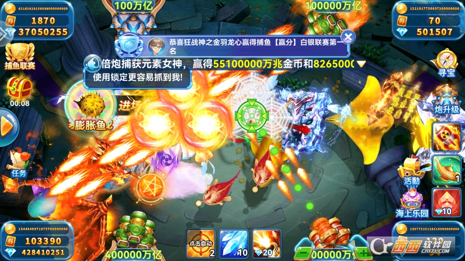 疯狂捕鱼四至尊版135M0人在玩疯狂捕鱼四至尊版是一款超适合休闲解压的街机捕鱼手游,主打简单易上手的玩法,不用复杂学习,不用记繁琐规则,玩家只需轻轻点击屏幕,就能发射子弹捕获鱼群,哪
