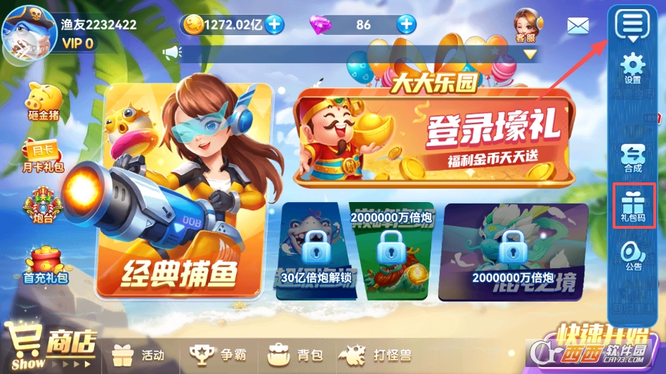 炮台升级养成玩法,玩家可以用捕鱼、做任务获得的金币,升级自己的炮台,炮台等级越高,威力越大、覆盖范围越广,还能解锁专属炮弹特效,升级后的炮台能轻松捕获高分鱼种和BOSS,进一步提升捕鱼效率和收益。