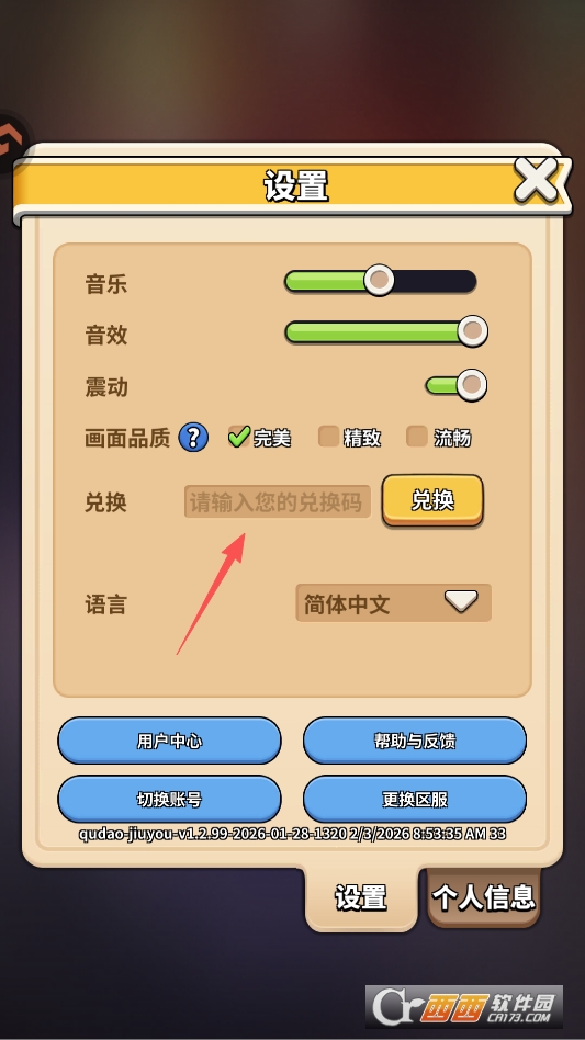 找到兑换码区域输入兑换码即可领取奖励