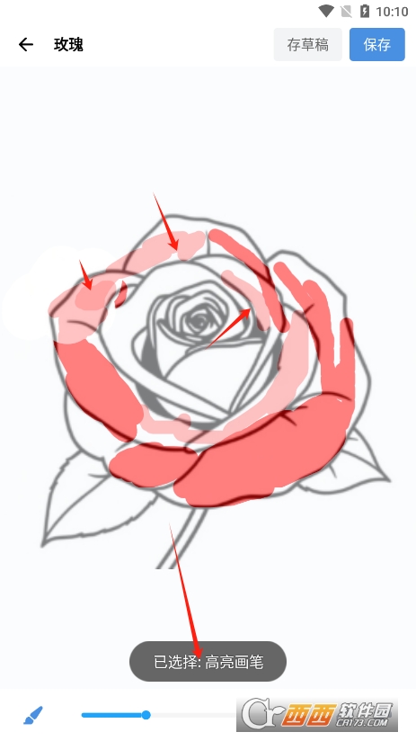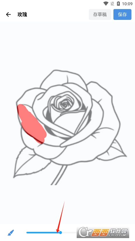 5、然后在这里拉大你的画笔,然后进行滑动填色就可以了