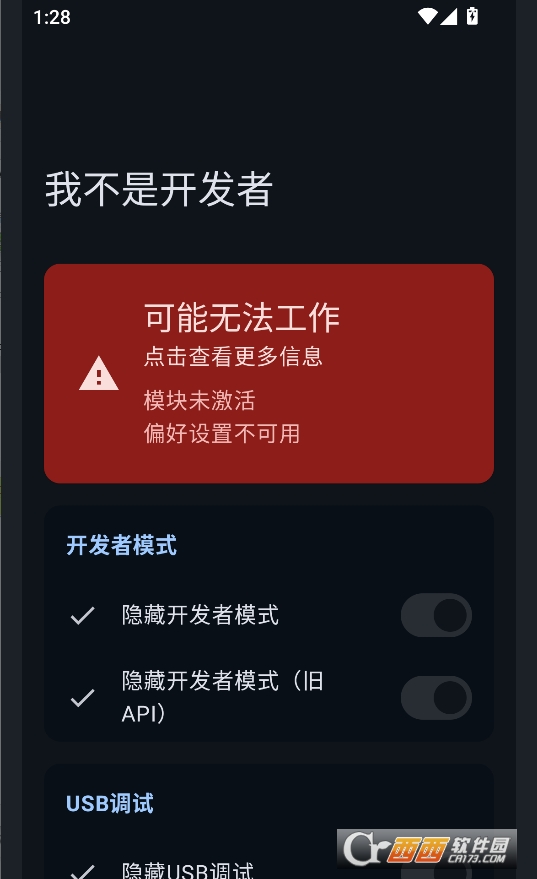 我不是开发者模块APK(IAmNotADeveloper)是一款专为Android设备打造的开源Xposed模块工具,核心定位是帮助普通用户在不关闭开发者模式的前提下,隐藏系统内的开发者相关选项,规避非专业操作带来的设备异常风险,同时兼顾实用性与安全性,适配多数主流Android系统版本,无需复杂的技术基础,上手简单便捷,完美解决普通用户使用开发者模式时的痛点困扰,是兼顾便捷性与安全性的手机系统辅助工具。该软件基于Kotlin语言开发,依托LSPosed与Xposed框架实现核心功能,全程开源且不收集任何用户隐私信息,适配Android多版本设备,无论是日常使用手机的普通用户,还是需要保持开发者模式开启但不想暴露相关选项的人群,都能通过该工具获得更安心、流畅的手机使用体验。