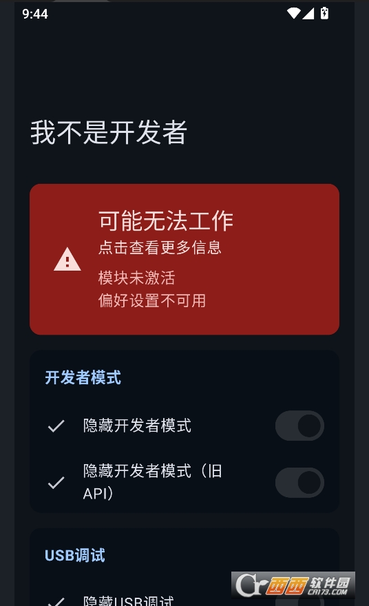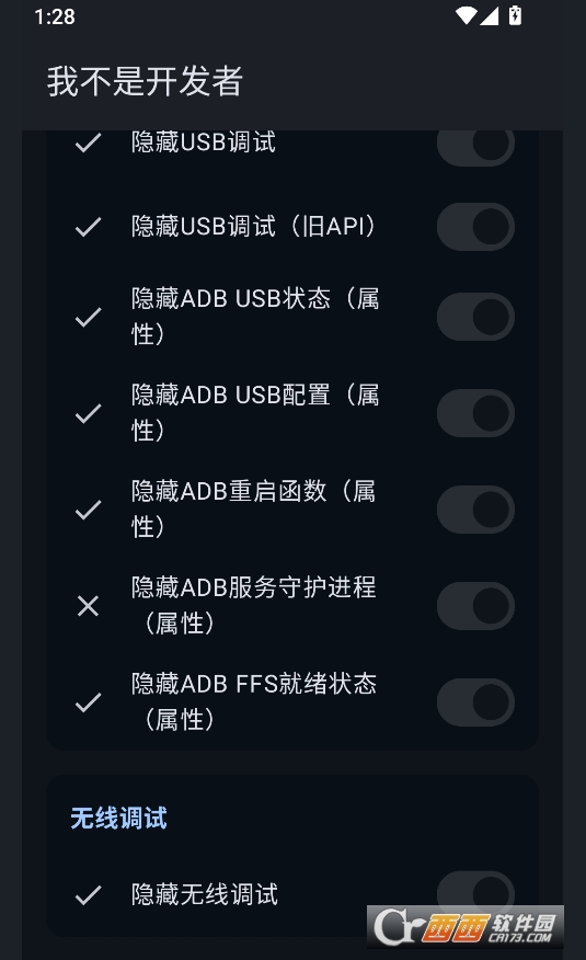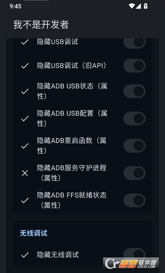 1.核心隐藏功能:可一键隐藏Android系统设置中的开发者选项入口,同时支持隐藏USB调试、无线调试等开发者模式下的核心子选项,实现“开启开发者模式但不显示相关选项”的效果,避免他人误操作导致设备卡顿、设置错乱等问题,不影响开发者模式本身的正常运行,满足用户对开发者模式的隐性使用需求。