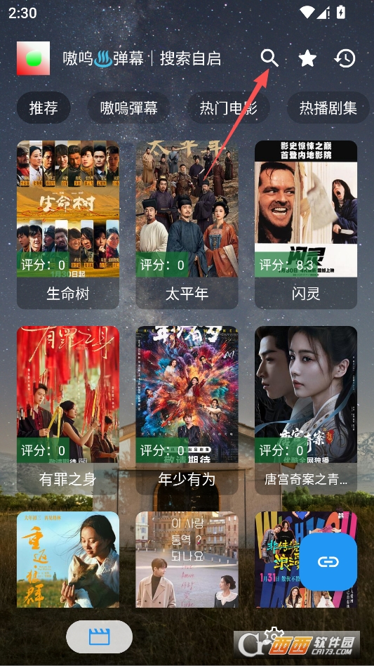 点击主页上方搜索影视