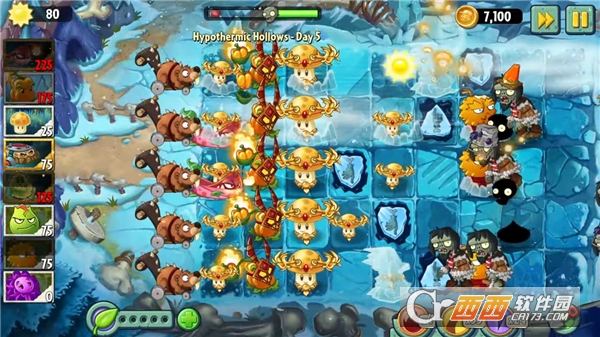 核心还是经典的塔防玩法,玩家需要在游戏地图的格子上种植各种植物,收集阳光资源,利用植物的攻击和防御能力,抵御一波波僵尸的入侵,阻止僵尸突破防线、破坏花园。