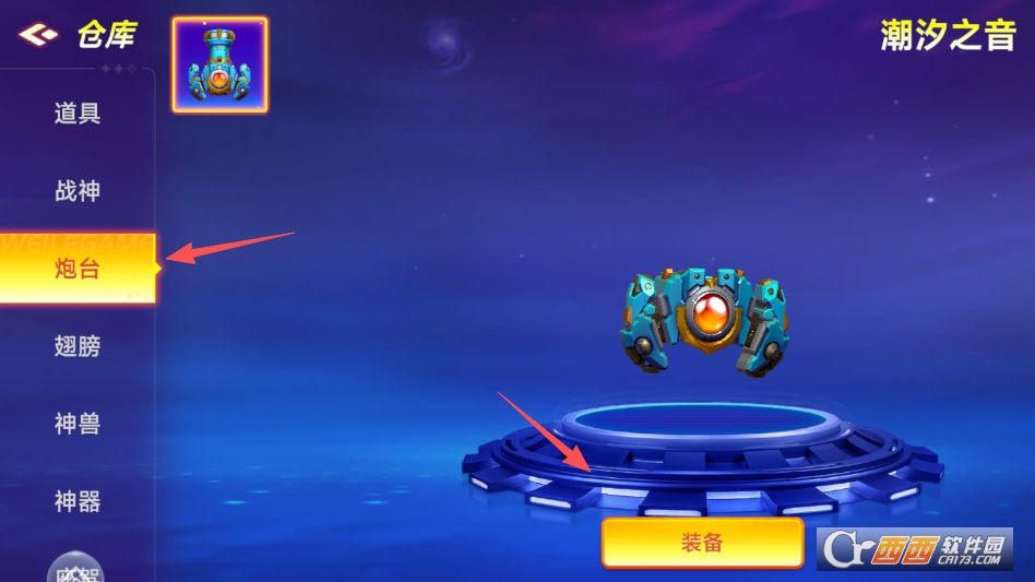 打开背包后点击左侧炮台版块,即可切换不同炮台