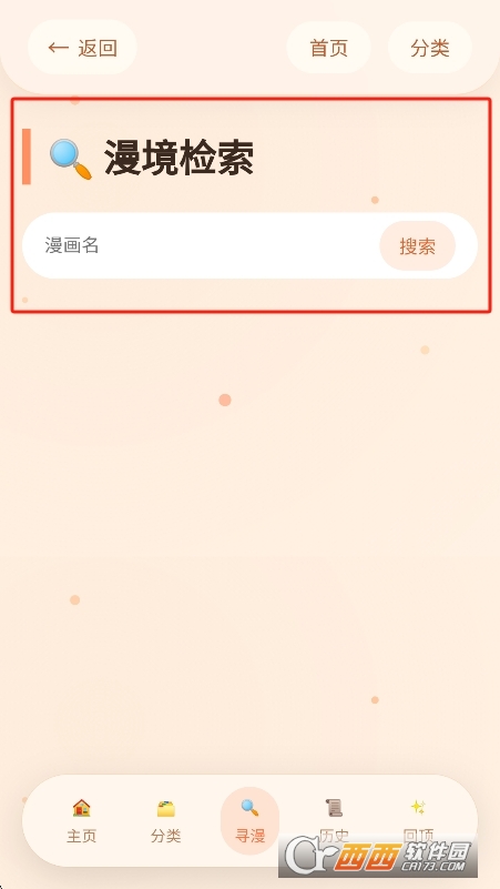 2、点击搜索框输入漫画名或作者名(支持拼音首字母)。