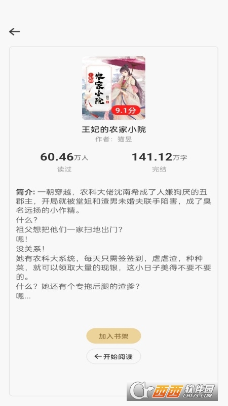 4、点击书籍封面进入详情页,阅读简介和目录。