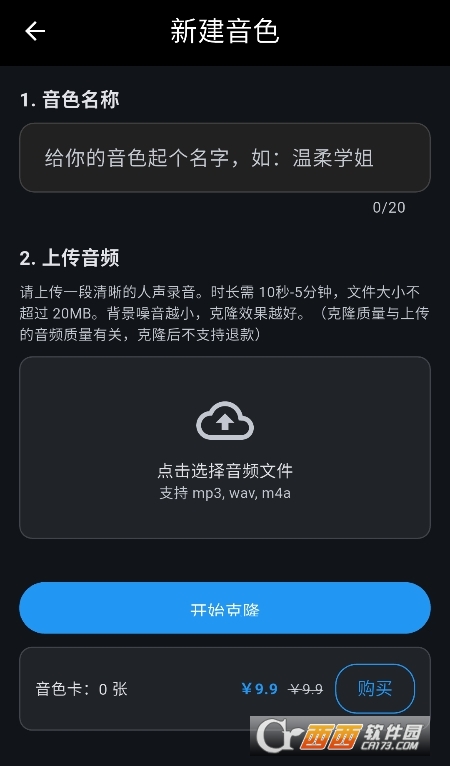 3、支持上传喜欢的声音,提供克隆服务