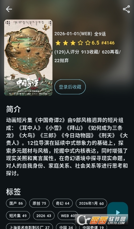 3、开始播放:点击番剧封面进入详情页,查看简介、剧集列表、评分。选择剧集开始播放。