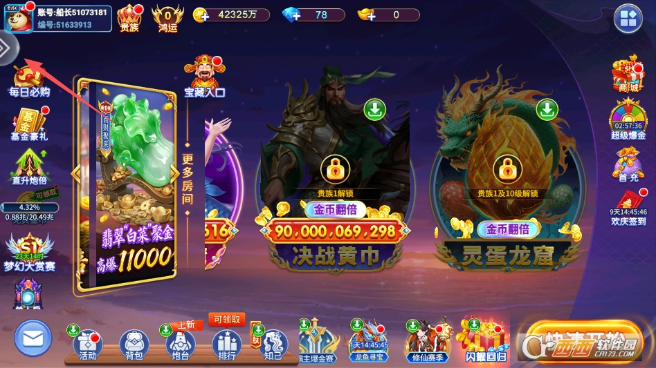 5. 炮台升级玩法,玩家通过捕鱼积累金币,用金币升级炮台倍率,从低倍到高倍逐步解锁,最高可解锁千倍、万倍炮台,炮台倍率越高,炮弹威力越大,捕获大鱼和BOSS的概率就越高,奖励也越丰厚。